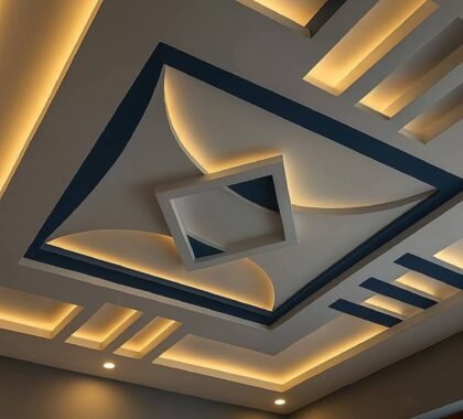 • A false ceiling, also known as a fall ceiling, is a stylish interior solution that enhances the look and functionality of any space. Installed below the main ceiling, it adds a modern finish while helping to conceal electrical wiring, air-conditioning ducts, and lighting fixtures.