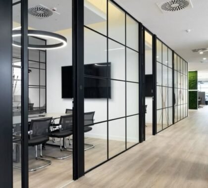 • Aluminium Office Partitions – Glass and solid partitions for modern workspaces